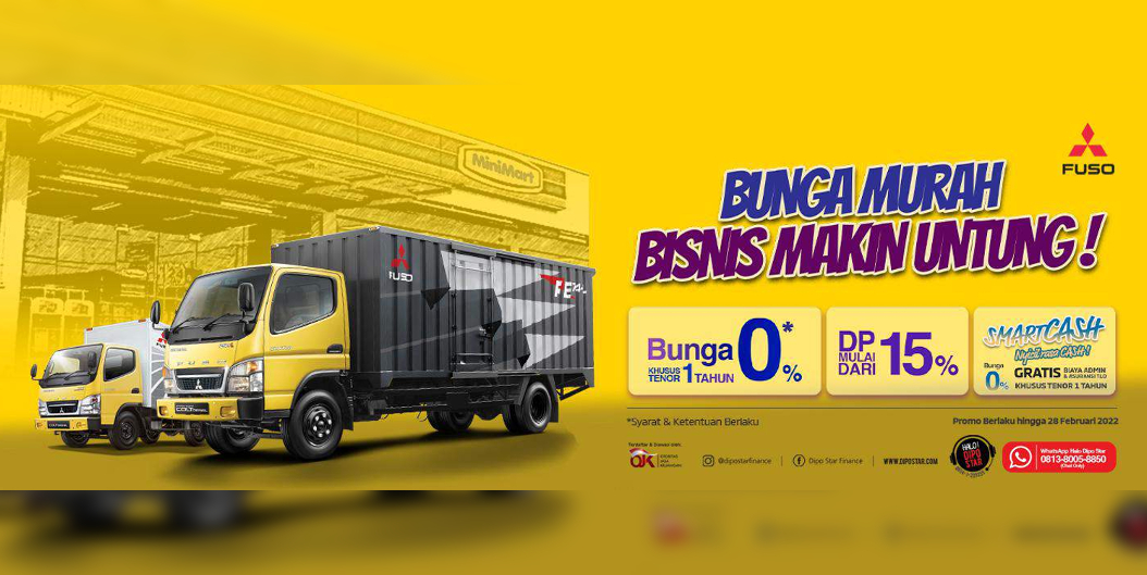 - Bunga 0% khusus untuk Tenor 1 Tahun dengan DP minimum 30% (berlaku untuk chassis only)